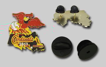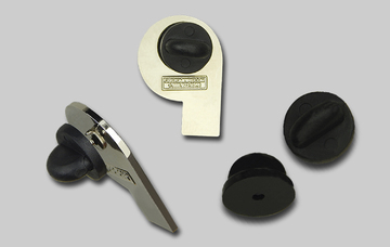 Another option for a 2 clutch application is a rubber clutch. They are more secure than the metal types so they are often used for large trading pins which are attached to sports bags, etc.