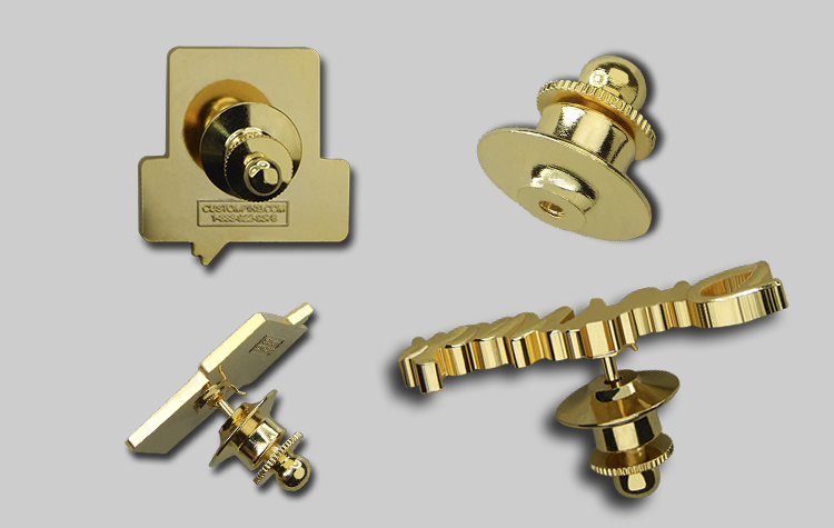 The standard is called a butterfly Clutch or military Clutch. You push them on and simply the tabs together to remove them. They are the standard attachment included with each individual lapel Pin.