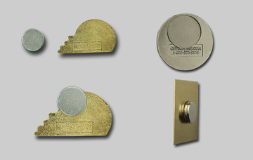 For those who prefer not to put a “pin” through their clothing, a magnet can be used. Your clothing is never damaged. Nothing is simpler for attaching a lapel pin to your clothing than a magnet. Just hold the pin wherever you want it and place the magnetic disk behind the fabric. They are very secure and very easy to remove.